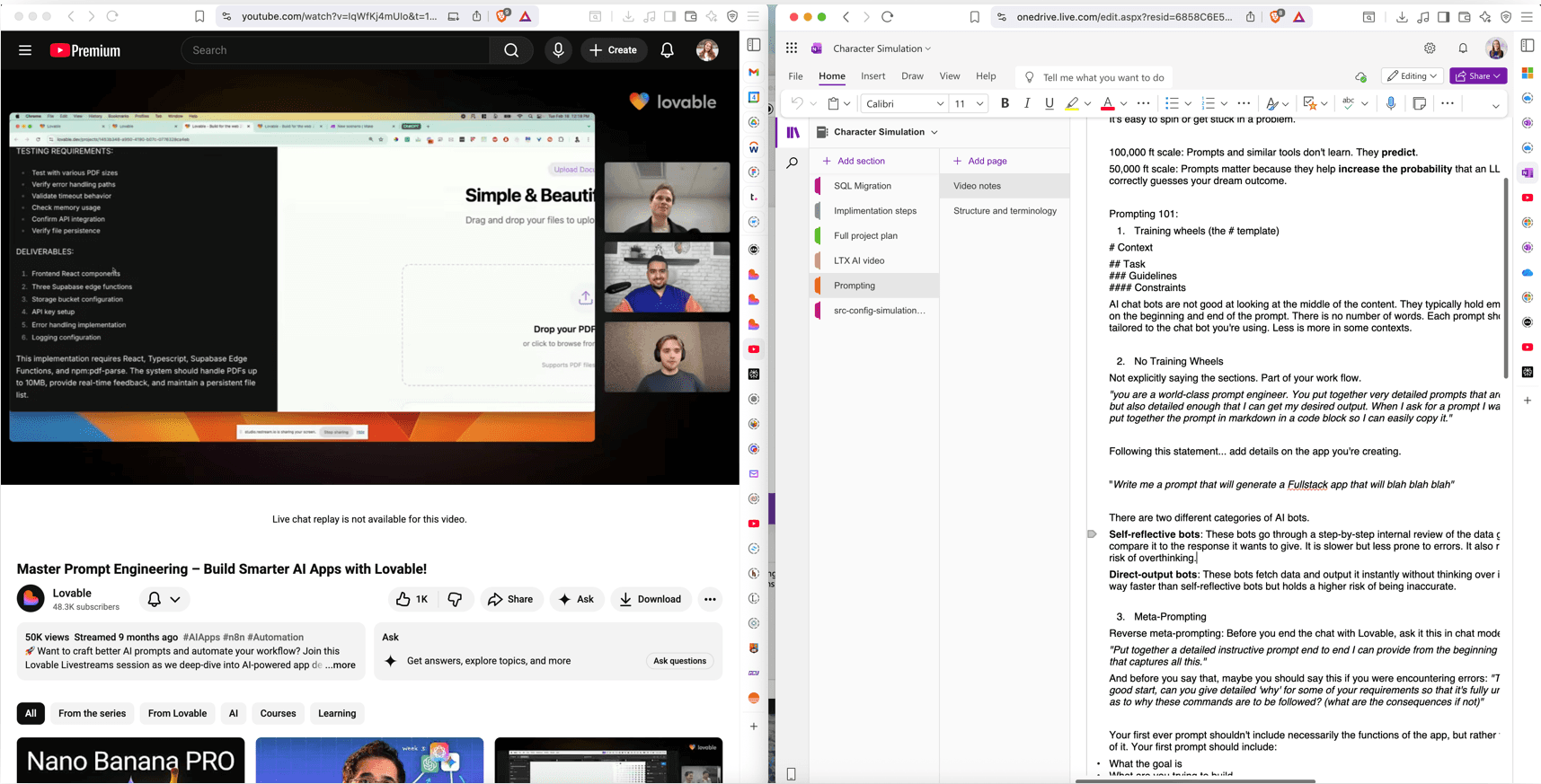 Lovable had a workshop video that was especially helpful, here's a photo from my research and my note set-up.