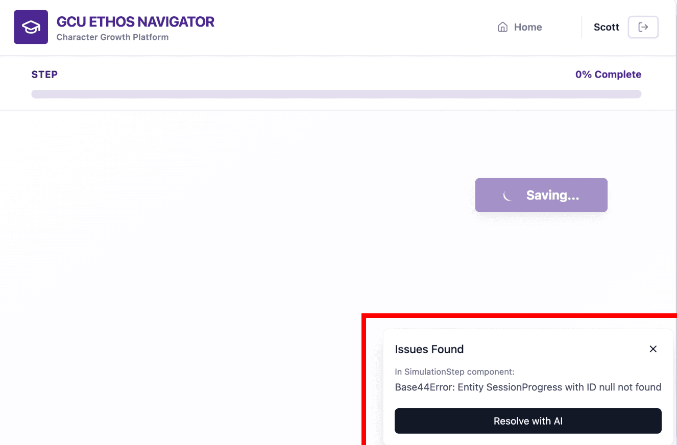 Throughout the project, my role expanded beyond UX/UI design. I first designed the product’s user experience by translating the researcher’s reflection framework into wireframes and interface flows. I then became the AI product builder, using structured prompts and iterative refinement to guide an AI platform generator in developing a functioning application. Finally, I acted as a video director, using AI video tools to produce the moral dilemma simulation that initiates the reflection process.