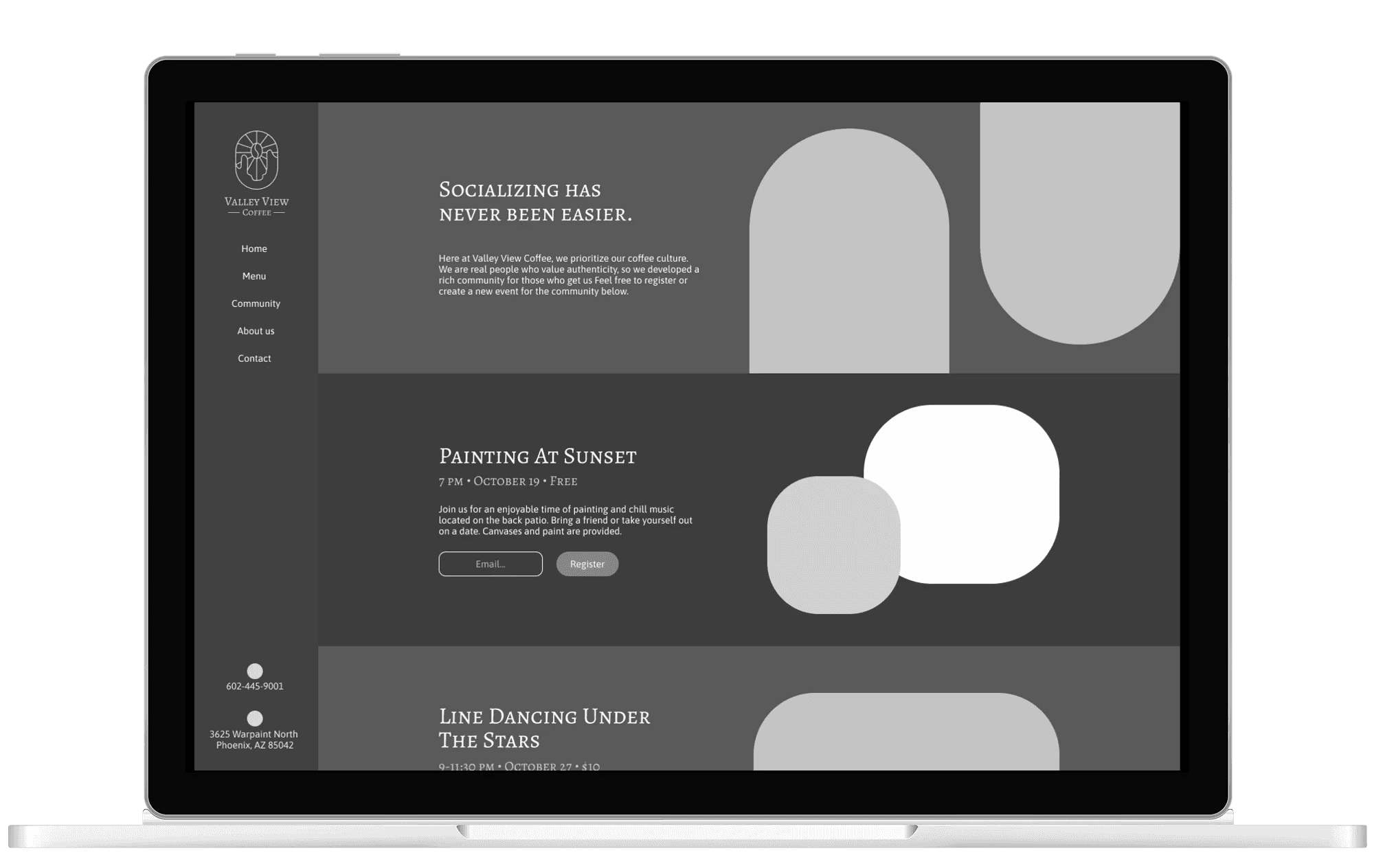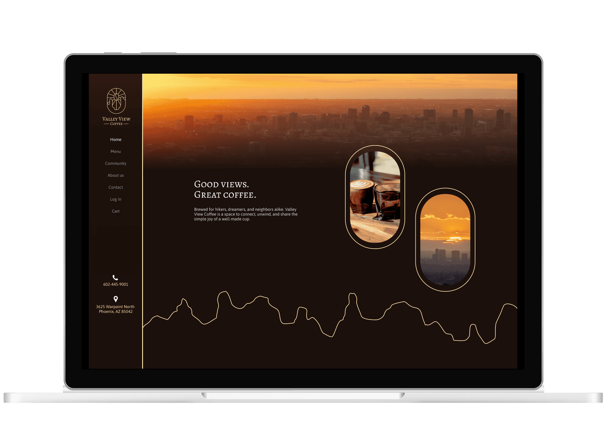 Valley View Coffee started as a concept that I expanded by creating its brand, web design, and website build.