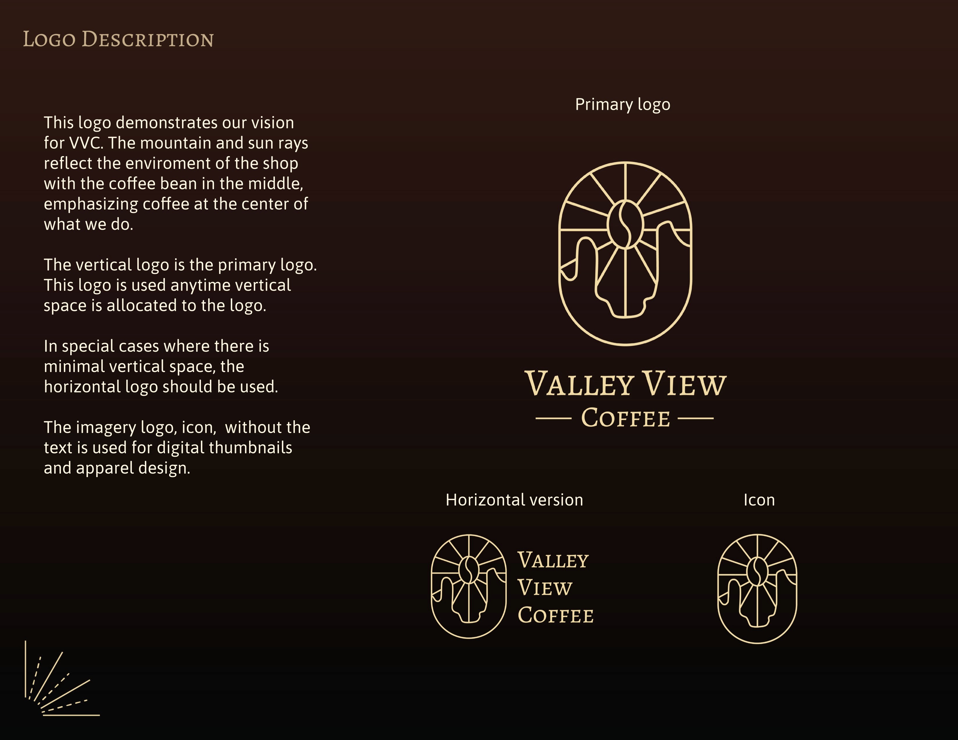 This is the brand book made for Valley View Coffee, based on the Creative Brief and research performed earlier.
