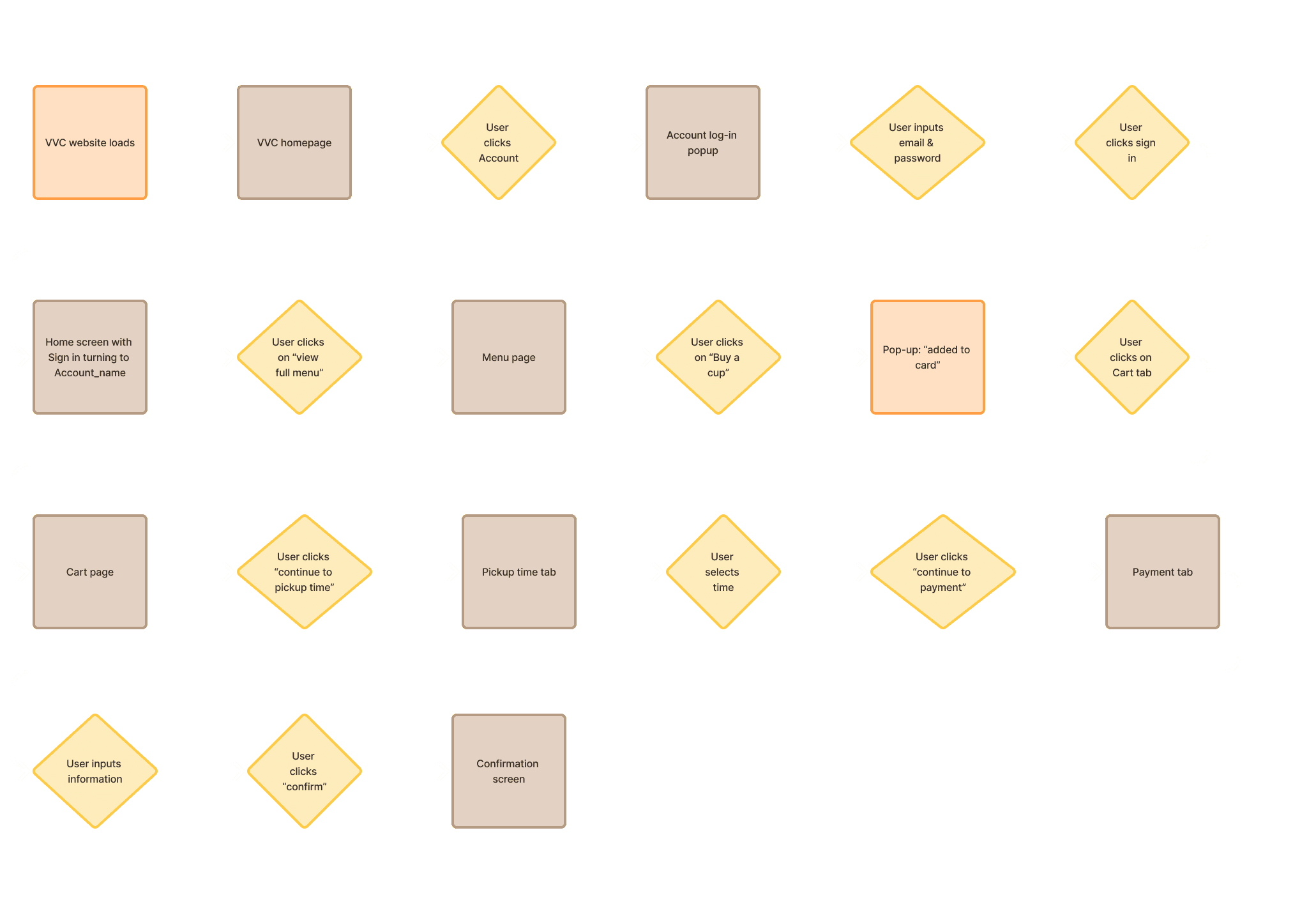 This user-flow represents the steps a general user takes from entering the website to placing an order online.