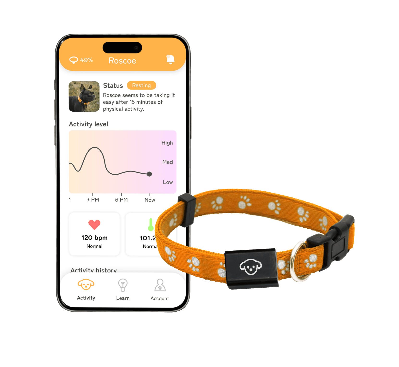 Insights about her dog's daily activity, mapping the personality and temperament of the dog.